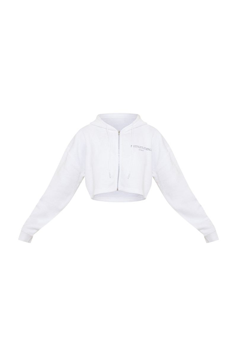 PrettyLittlething White Copyright Slagan Zip через врожай