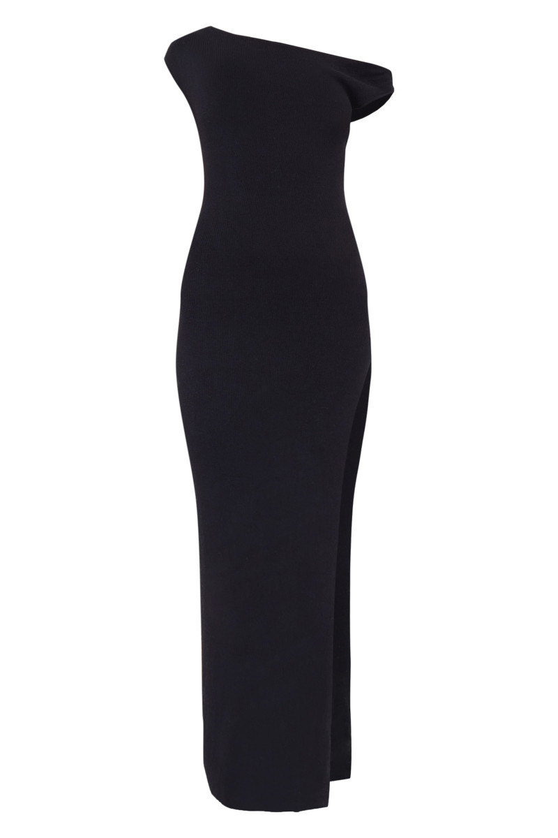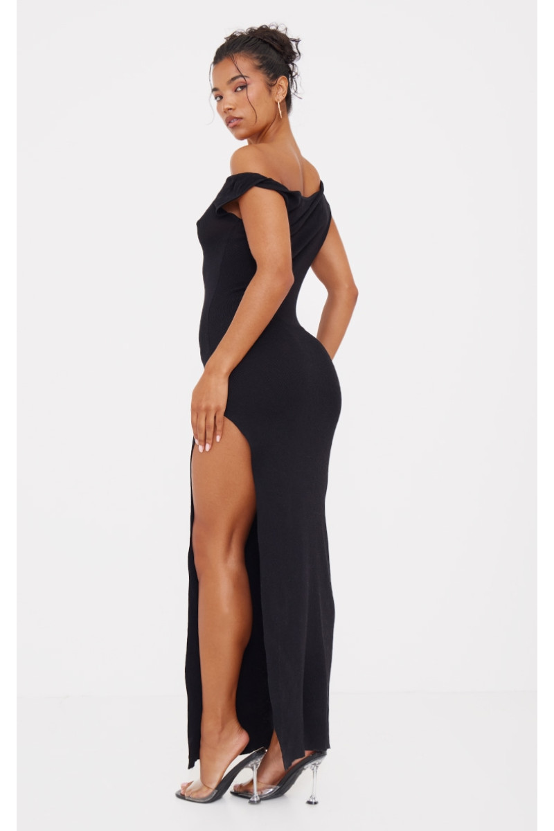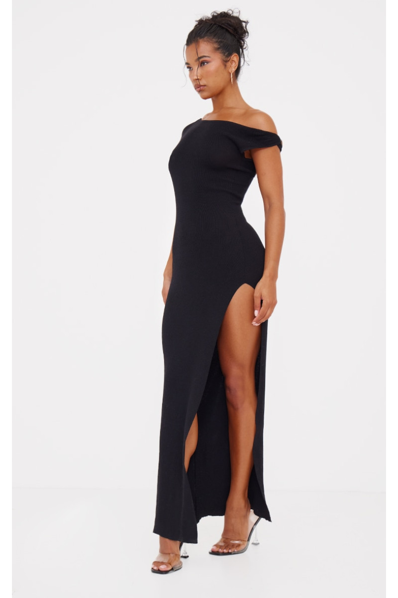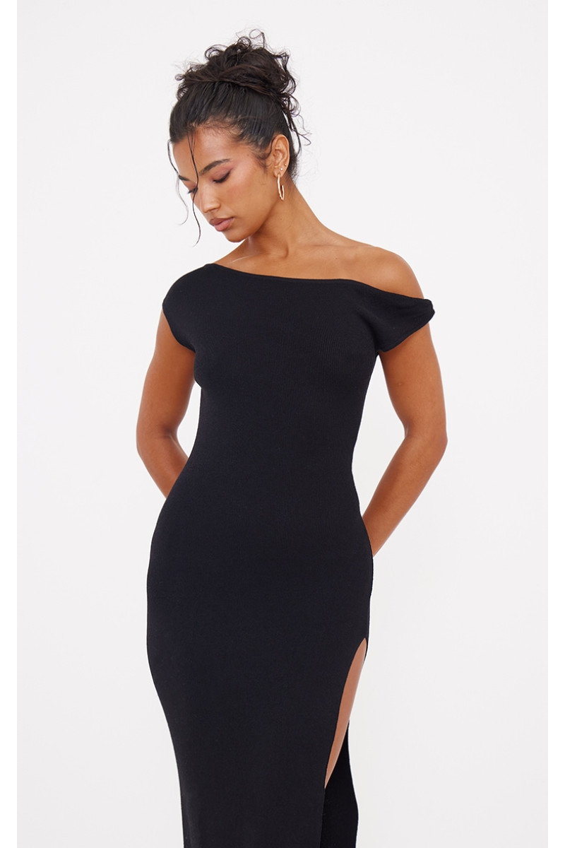 Чорна сукня максі з тонким в'язанням і круглим вирізом