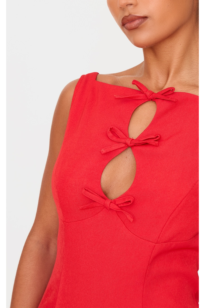Будьте в тренді цього сезону в цій червоній плетеній міні-сукні з високим горлом і бантом. Ця міні-сукня, виготовлена з червоного плетеного матеріалу з високим вирізом і бантом, є обов’язковою для вас. Як ти можеш протистояти? Поєднайте туфлі на підборах і золоті аксесуари, щоб виглядати як ніхто інший. Довжина приблизно 81 см/32 дюйма (на основі розміру вибірки UK 8) На моделі одягнено розмір UK 8/ EU 36/ AUS 8/ US 4. Зріст моделі — 5 футів 6 дюймів Категорія: СукніТип продукту: Облягаюча сукняКолір: ЧервонийМатеріал: Тканий дизайн на замовлення: Гладкий виріз: Круглі рукави : Пригода без рукавів: вечір