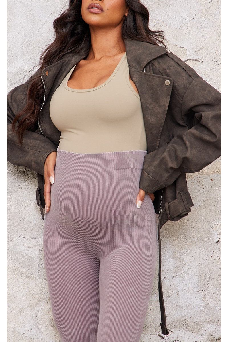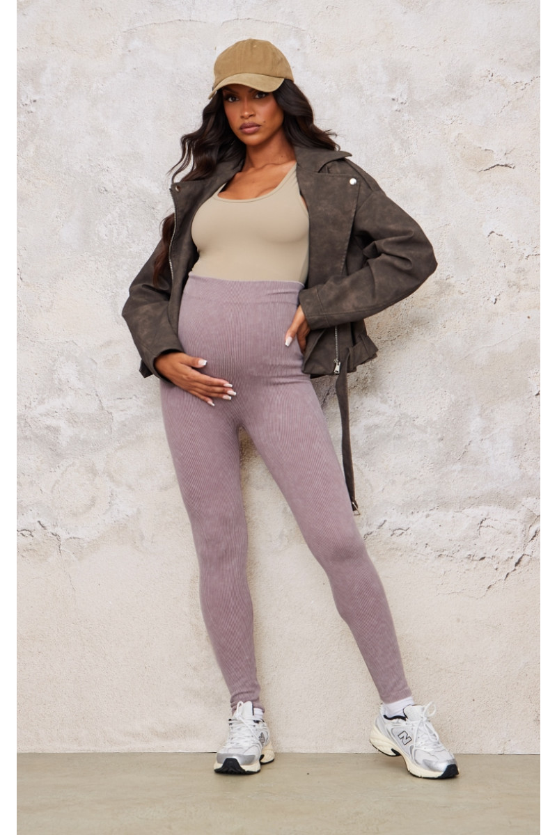 Легінси для вагітних темно-коричневого кольору з вицвілою контурною рубчиком
